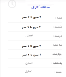 نوبت دهی همه روزه از ساعت ۹ صبح تا ۹ شب