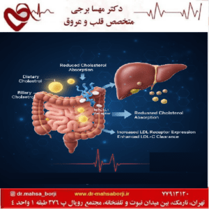 کاهش تحویل به کبد: کاهش جذب کلسترول از روده، منجر به کاهش تحویل کلسترول به کبد میشود. کبد برای جبران این کمبود، تعداد گیرندههای LDL خود را افزایش میدهد.